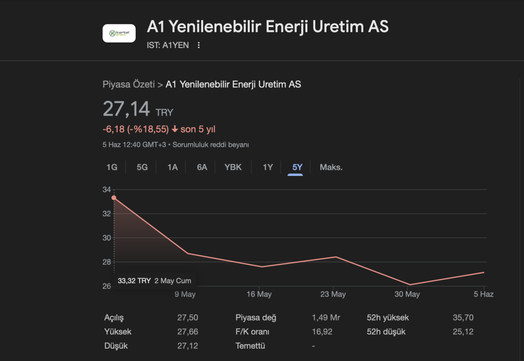 - Sektörel Büyüme: Yenilenebilir enerji sektörü, global ve yerel düzeyde büyüme potansiyeline sahip. A1YEN, bu büyümeden faydalanabilecek konumda.