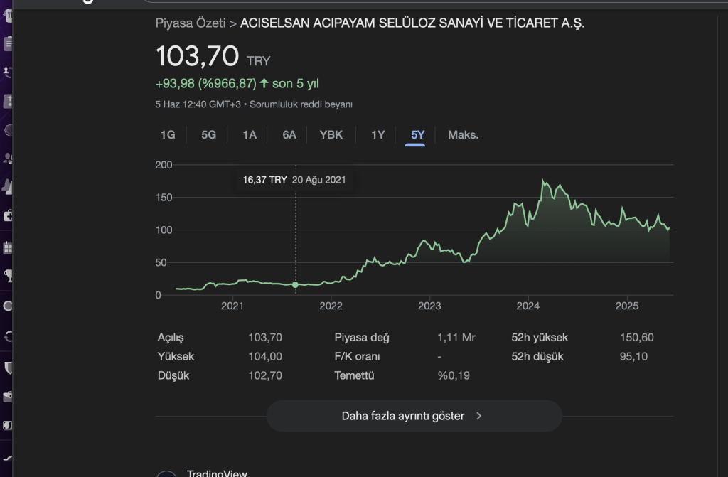 💵 Güncel Hisse Fiyatı (5 Haziran 2025): 103,70 TL