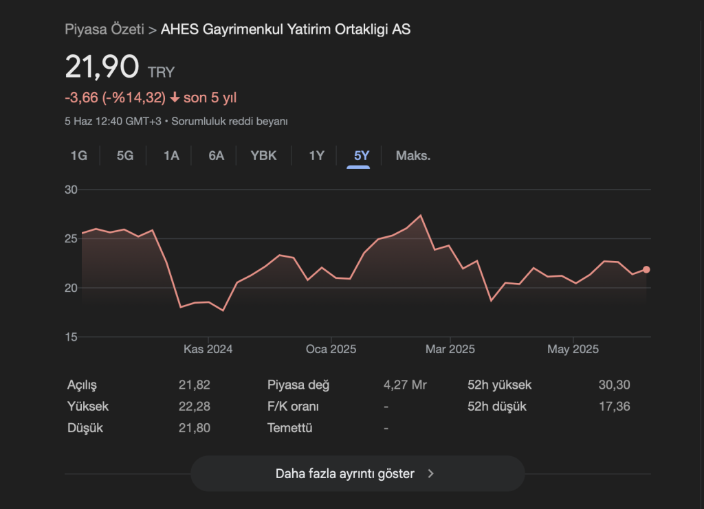 💵 Güncel Hisse Fiyatı (5 Haziran 2025): 21,90 TL