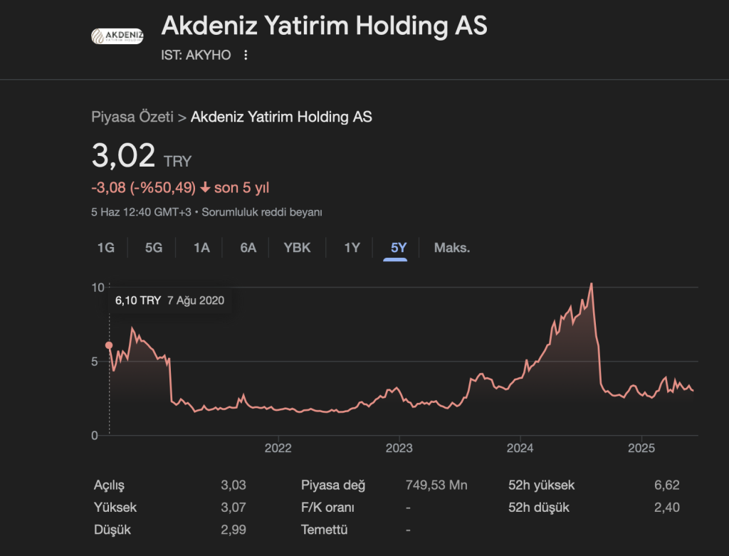 💵 Güncel Hisse Fiyatı (5 Haziran 2025): 3,02 TL