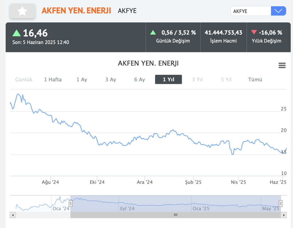 💵 Güncel Hisse Fiyatı (5 Haziran 2025): 16,46 TL