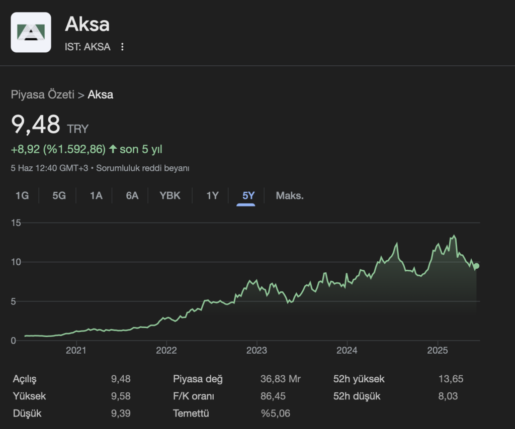 💵 Güncel Hisse Fiyatı (5 Haziran 2025): 9,48 TL