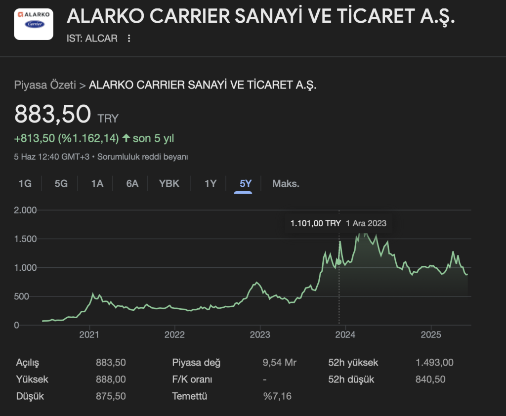 💵 Güncel Hisse Fiyatı (5 Haziran 2025): 883,50 TL — (8 Haziran 2025: 885,00 TL)