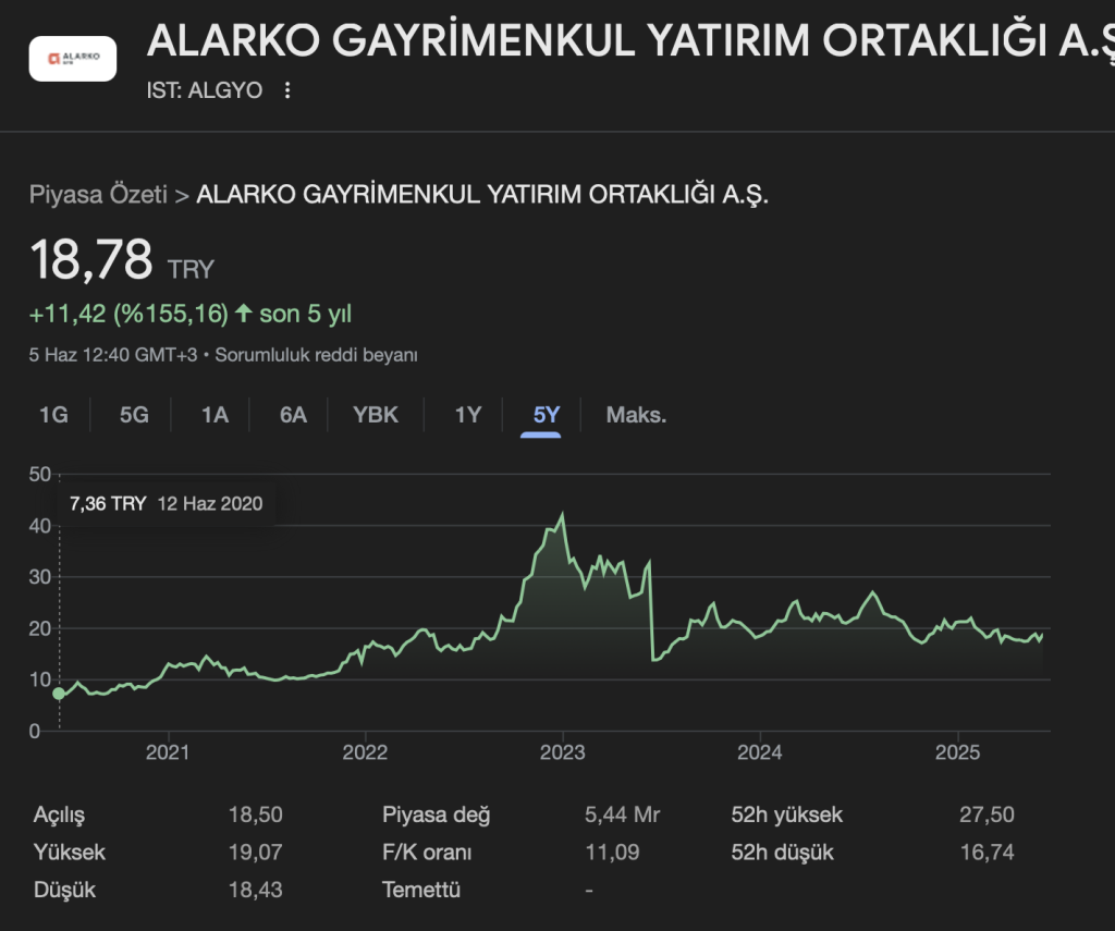 💵 Güncel Hisse Fiyatı (5 Haziran 2025): 18,78 TL