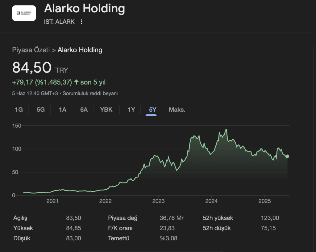 💵 Güncel Hisse Fiyatı (5 Haziran 2025): 84,50 TL