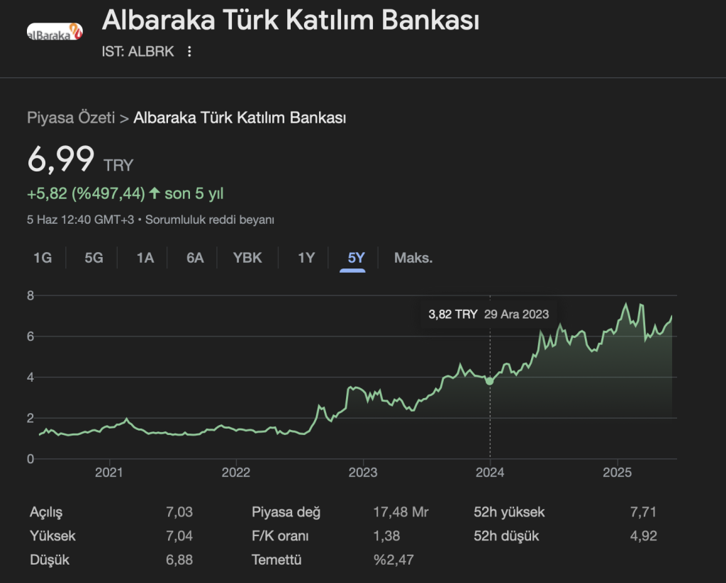 💵 Güncel Hisse Fiyatı (5 Haziran 2025): 6,99 TL