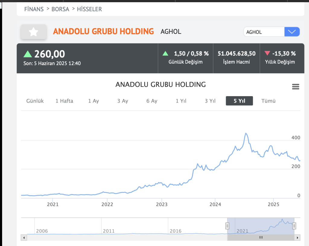 💵 Güncel Hisse Fiyatı (6 Haziran 2025): 260,25 TL