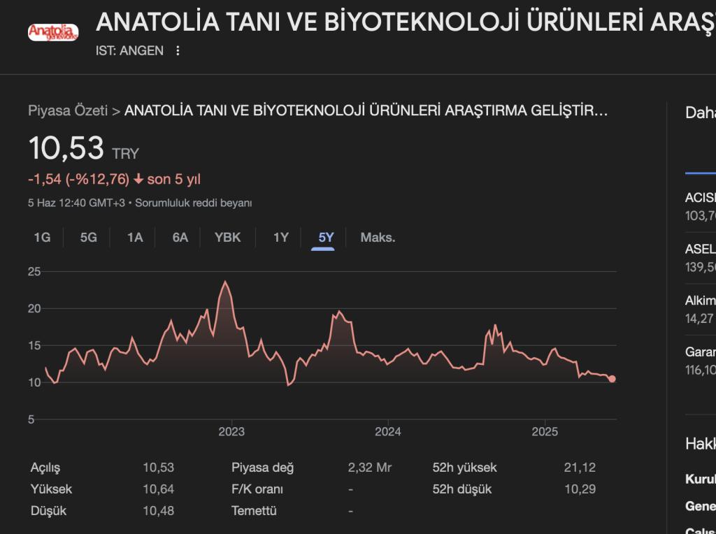 💵 Güncel Hisse Fiyatı (5 Haziran 2025): 10,53 TL