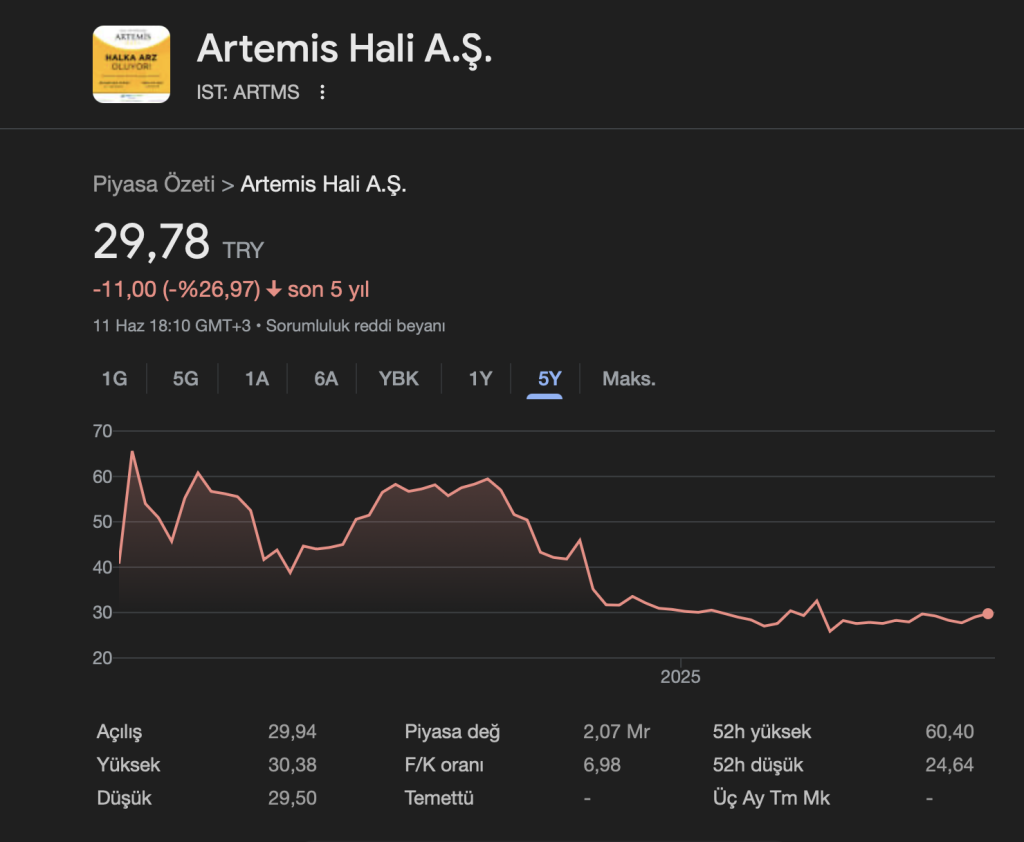 💵 Güncel Hisse Fiyatı (11 Haziran 2025): ~29,94 TL (+%3,17)