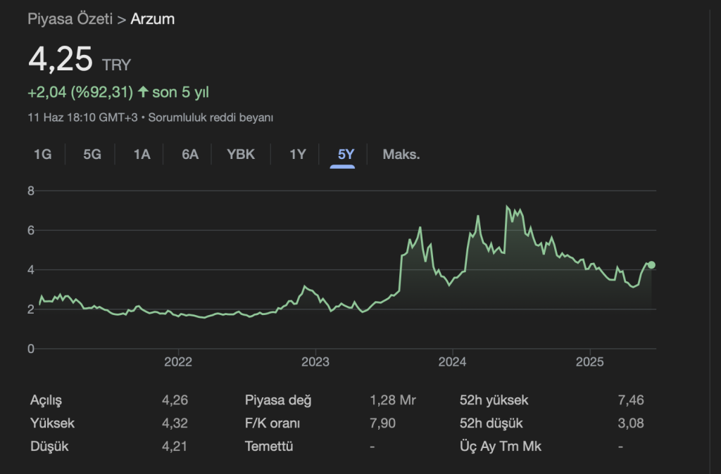 💵 Güncel Hisse Fiyatı (11 Haziran 2025): ~4,23 TL