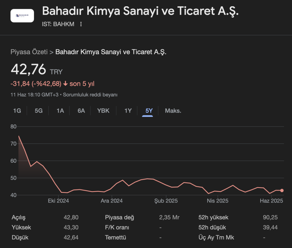BAHADIR KİMYA SANAYİ VE TİCARET A.Ş. (BAHKM)
