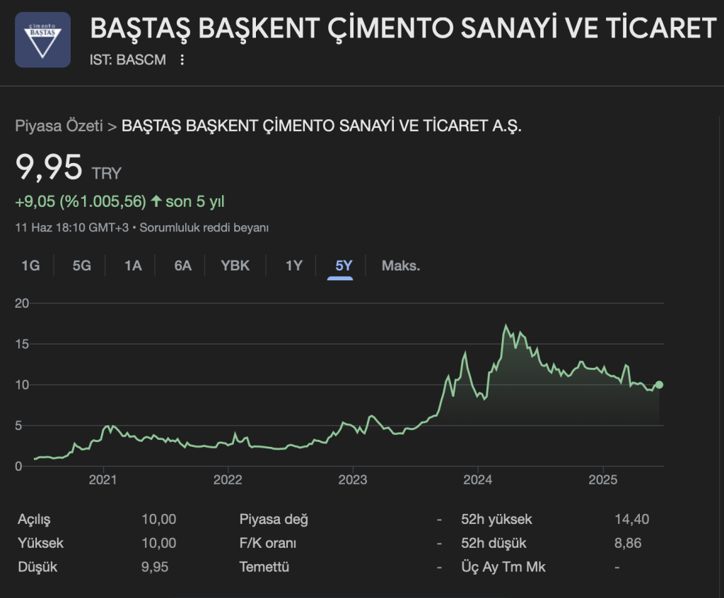 BAŞTAŞ BAŞKENT ÇİMENTO SANAYİ VE TİCARET A.Ş. (BASCM)