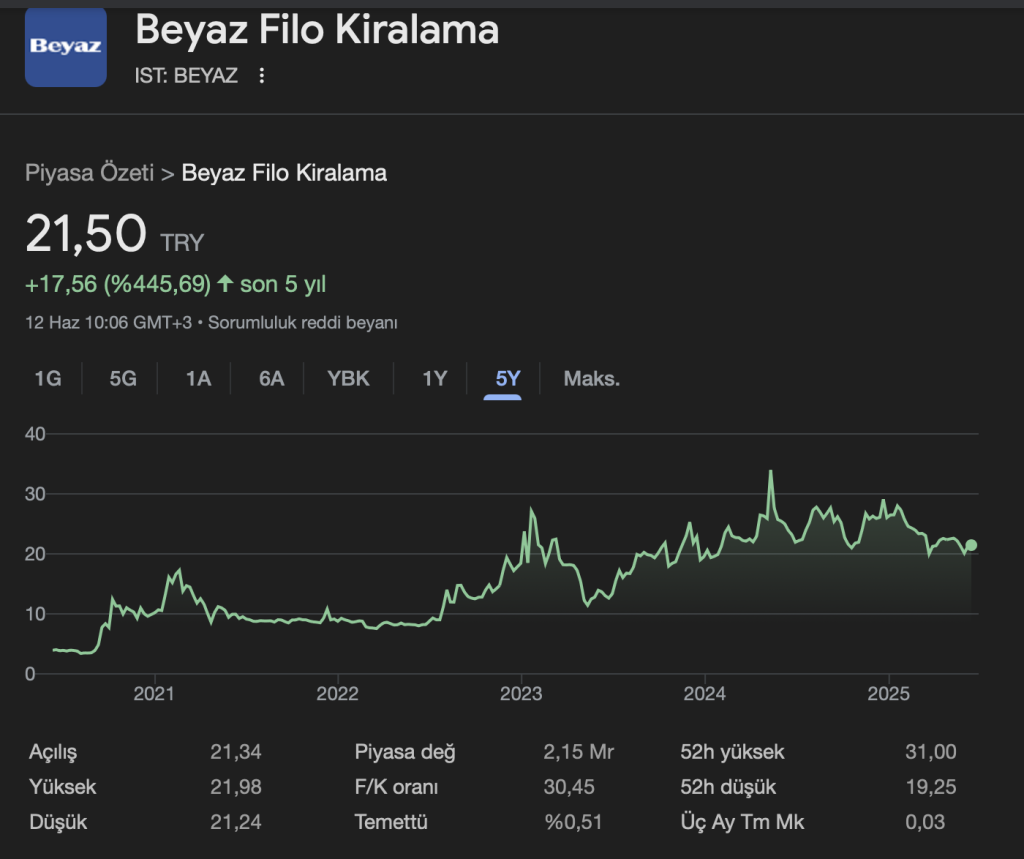 BEYAZ, Türkiye’de araç kiralama ve ikinci el satış segmentinde faaliyet gösteren köklü ama düşük temettü veren bir şirket.