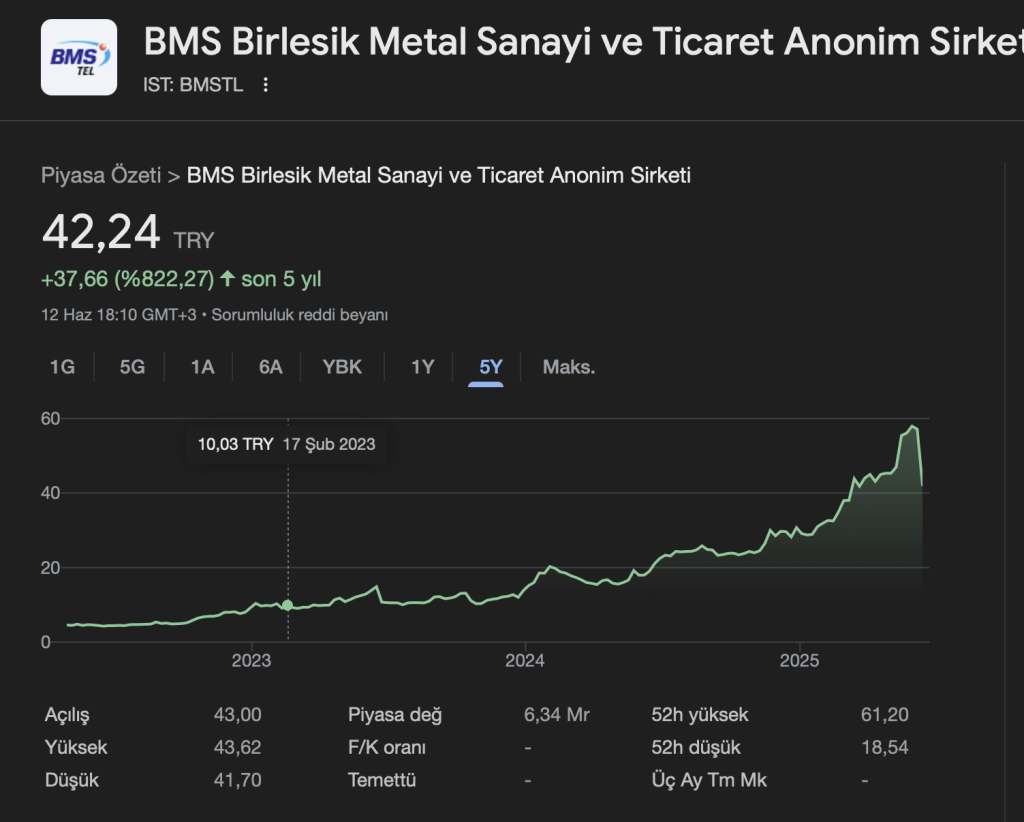 🔹 BMS BİRLEŞİK METAL SANAYİ VE TİCARET A.Ş. (BMSTL)